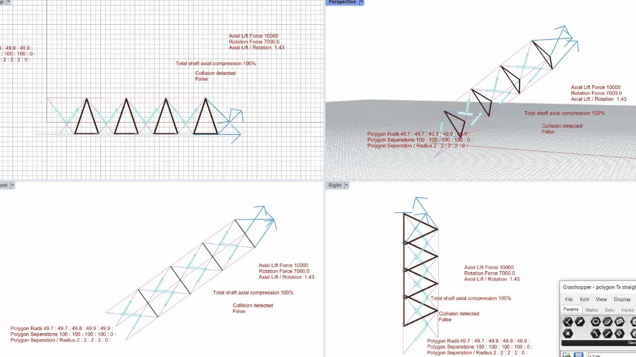 One effect which stands out for me is that when the rigid polygon layers are triangular …And the models are force settled… The triangles in the layers seem to become significantly displaced from their original axis in a spiraling pattern. You can see the overall shaft curve in the pictures in the previous post.