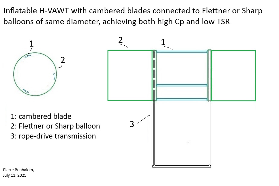 (PDF) Vertical axis wind turbine(s) connected to Flettner or Sharp balloons updated (see just below, with the sketch), following the reading of the publication below on the cambered blades of VAWT, the suitable number of blades (3) and the (high) solidity.