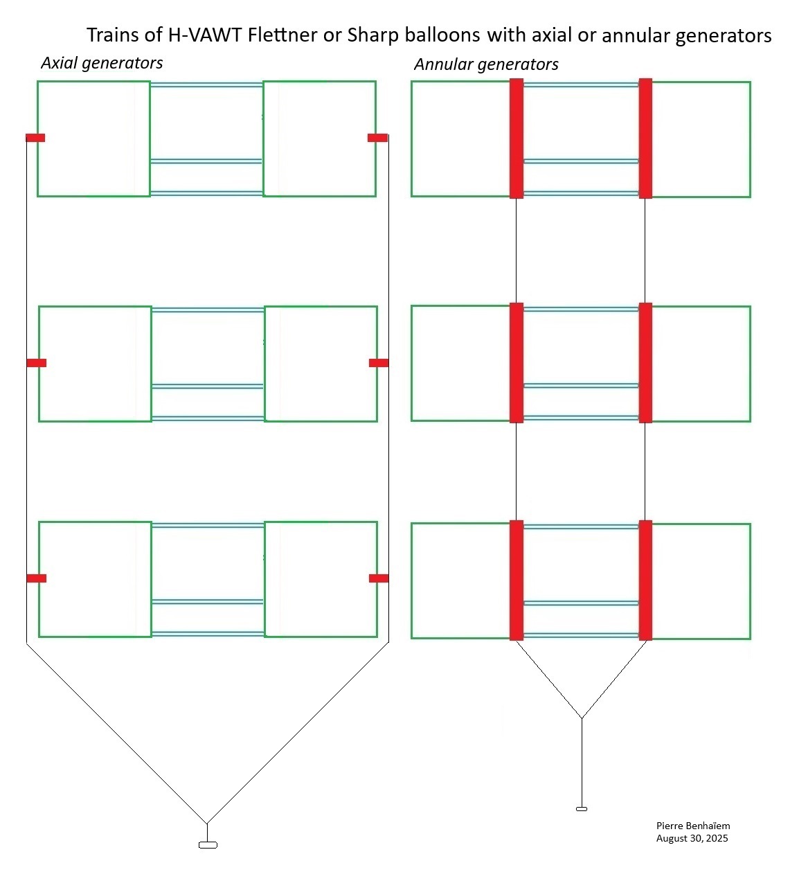 Trains of H-VAWT Flettner or Sharp rotor with axial or annular generators (based on the previous paragraph and onâ Numerical assumptionsâŚâ), static flight
