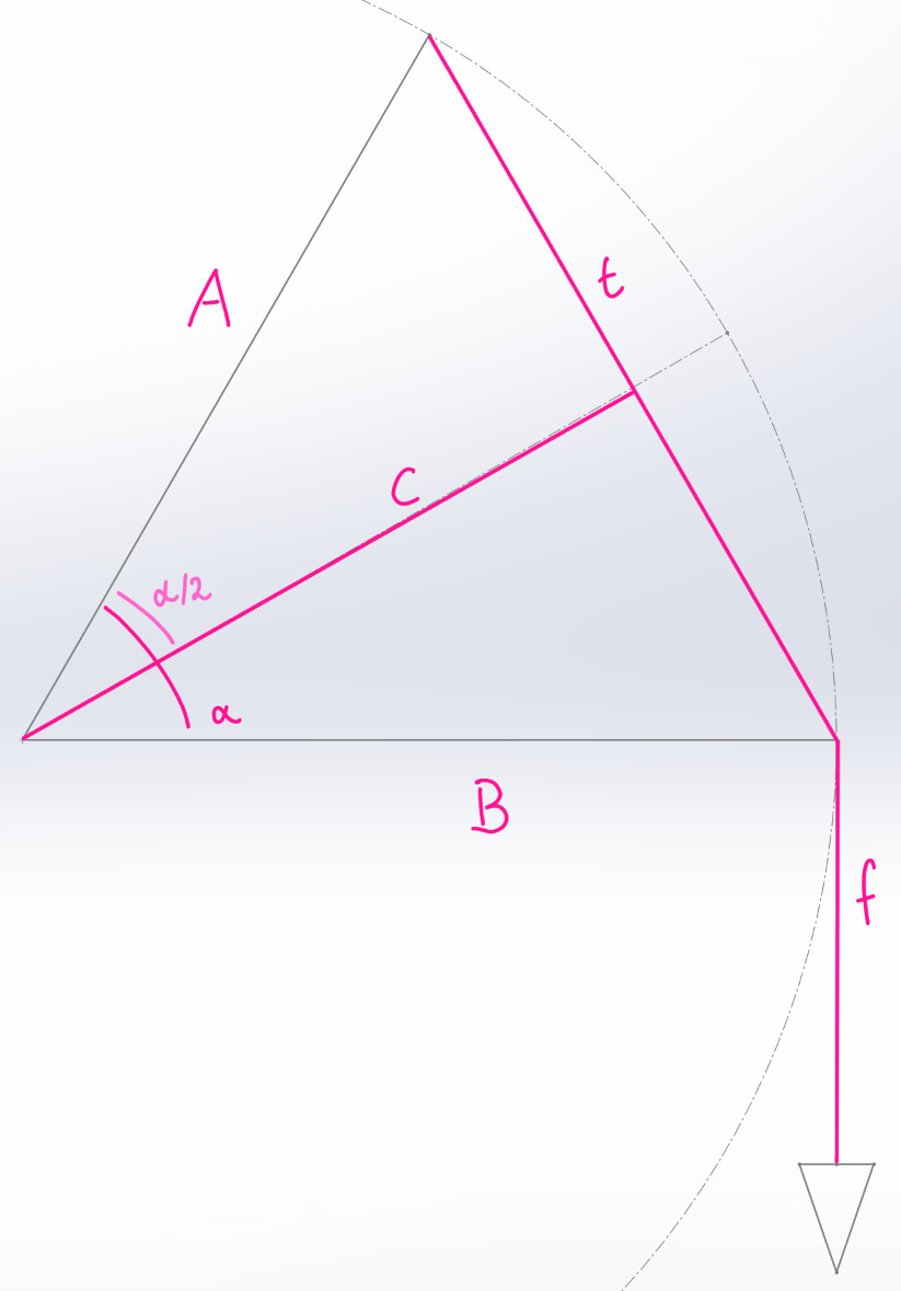 Here the two arms are of equal length, so the two gray right triangles you see are in the same plane and seem to be similar. That does seem to make calculations easier, but it’s not what I want.