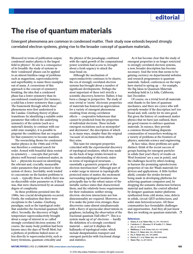 That’s a one-page-document summarizing much. I get from that if I squint that kite fabric might be like a quantum material, if every material must be a quantum material. How does that help me? It just adds a label to the fabric? In addition to it being red it is now also quantum? What extra knowledge do I now have about the fabric?