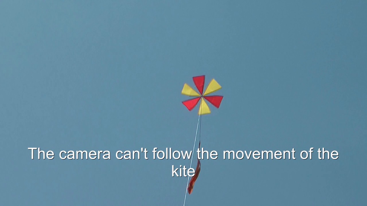 The bowl kite remains at ground level for most of the video, rising only momentarily (and very slightly) from time to time.