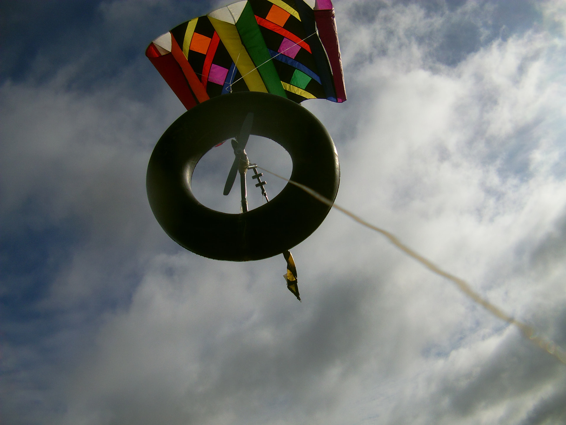 Thus, we have a regular wind turbine, an aerostat (torus), and a lifter kite.